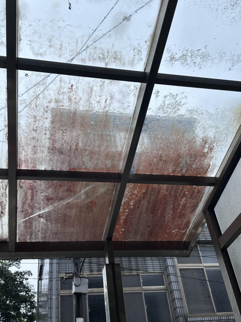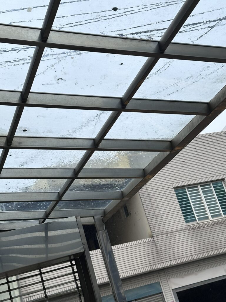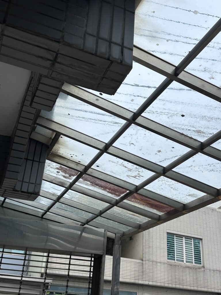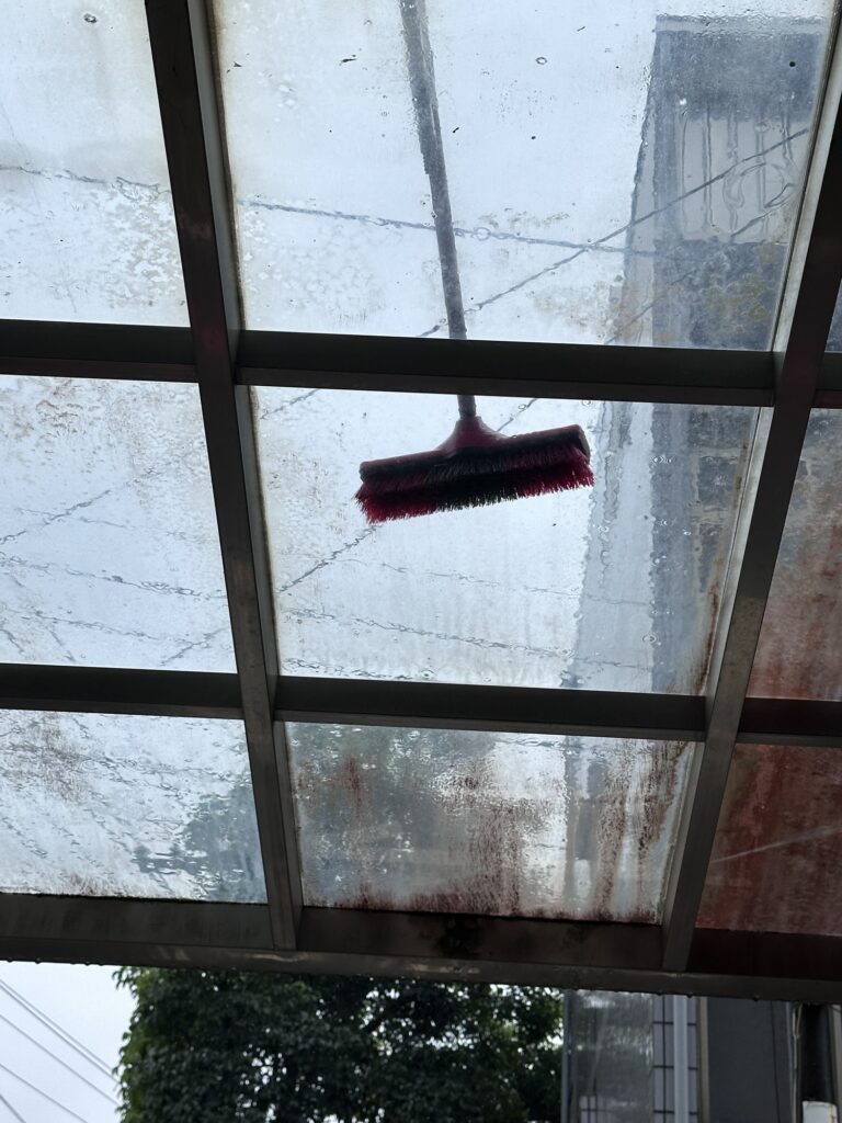 生活札記 玻璃採光罩清潔 2025 年 10 月 22 日 / 車庫上的玻璃採光罩,歷經多年風吹日曬,粉塵青苔的累積,已經結垢厚厚一層,一直想說找時間清潔整理一下,拖了很久也都沒處理。 這厚厚的的污垢 從二樓陽台看下去也是慘不忍賭 連續三天的颱風外圍環流,心想長年污垢應該泡軟了便開啟了「竹篙湊菜刀」模式。 地板刷+伸縮棒 沒想到效果出奇的好 經過1個多小時的刷洗,與高壓水槍的沖洗。 不敢說煥然一新,但也達到效果 原本車庫前頭的污垢 清洗後效果不錯 今天的清洗工作讓我想起埔鹽舅舅家窗櫺上的「晴耕雨讀」,不好的天氣,妥善的運用也會有很好的效益。