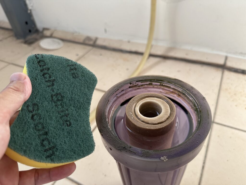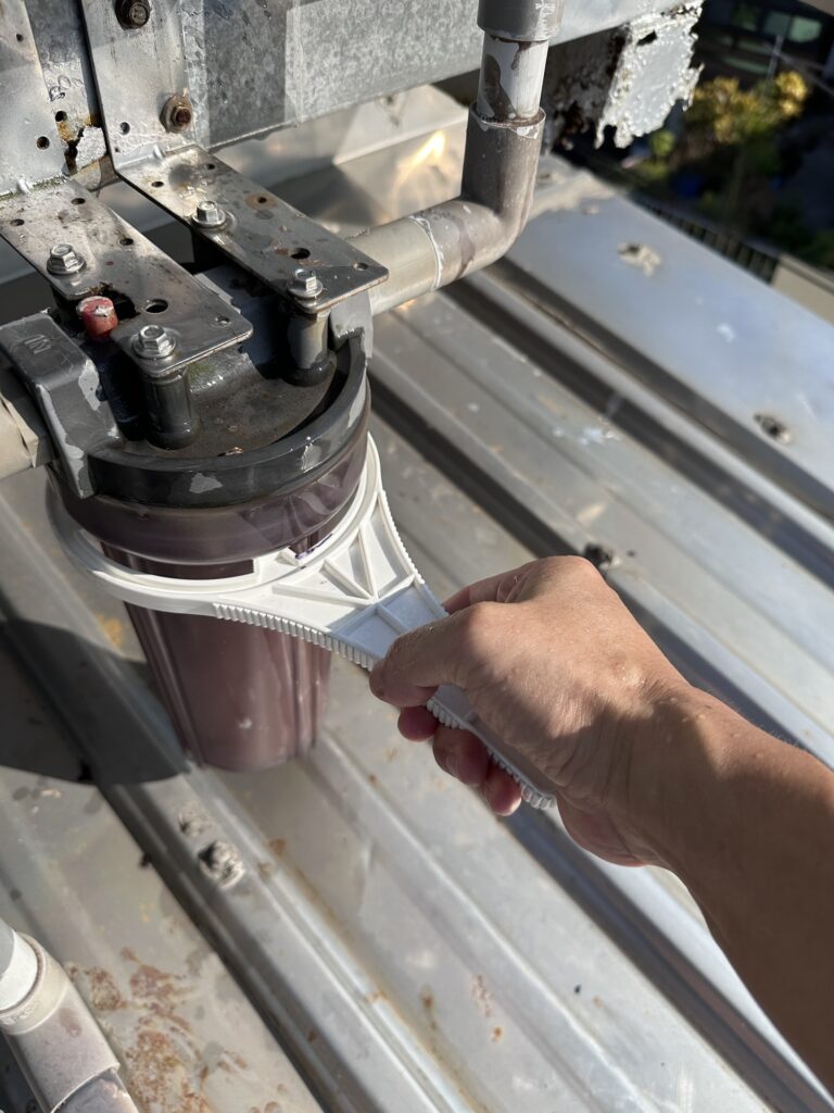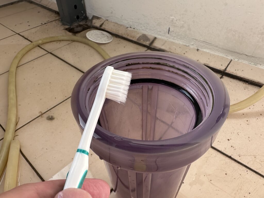 幾年前在水電蔡師傅的建議下,在水塔入水源頭裝了一個簡易的濾水器,之後每年定期於4、10月份(天氣涼爽時)更換濾芯,最明顯是改變是1樓廚房的RO淨水器換濾芯時可以明顯感收到顏色差異,而且浴室地板的水垢也變淡許多。